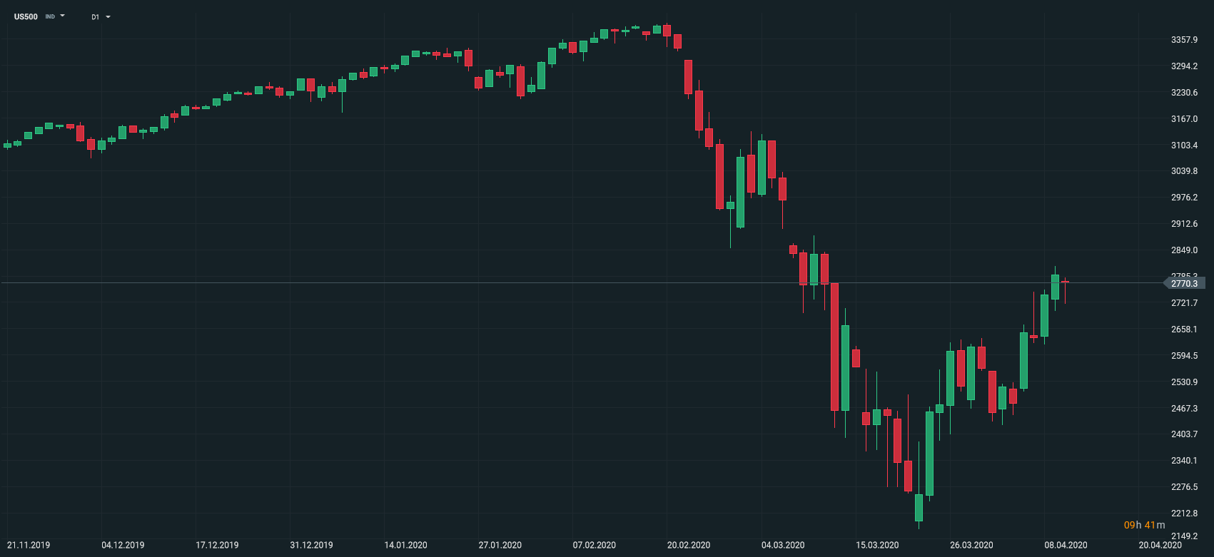 Od 23 marca do 13 w kwietnia S&P wzrósł o ponad 27%, Dow Jones o 32%, podczas gdy w ciągu tych 3 tygodni 16 milionów amerykanów straciło pracę, czyli ok 10% wszystkich pracujących w USA. Podobnie zachowują się giełdy w Europie. Polski WIG20 wzrósł w tym czasie o 24%, a gospodarka od 3 tygodni jest sparaliżowana narodową kwarantanną. Zachowanie giełd można by zrozumieć jeśli rzeczywiście byłaby szansa rychłego zneutralizowania wirusa i skutków załamującej się gospodarki światowej.